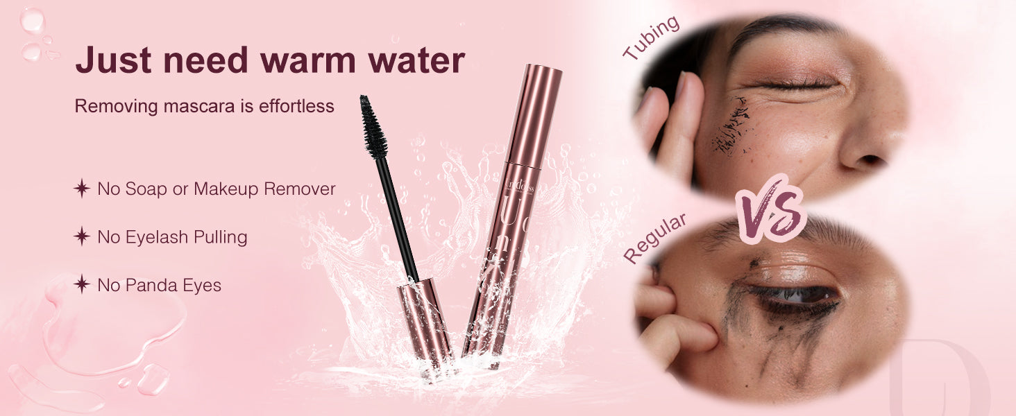 - Gentle Removal: Effortlessly remove mascara with just warm water and a washcloth. The tubes slide off without any rubbing or harsh removers, making it perfect for sensitive eyes.